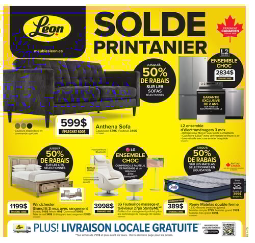De plus, les acheteurs peuvent profiter de circulaires mises à jour régulièrement, regorgeant d’offres exceptionnelles et de rabais sur une multitude d’articles. Meubles Léon s'engage à offrir un excellent service à la clientèle pour garantir une expérience de magasinage agréable. Avec des options de financement flexibles, il devient encore plus facile d'obtenir le mobilier de ses rêves sans se ruiner. Rendez-vous chez Meubles Léon pour transformer votre espace de vie tout en respectant votre budget!