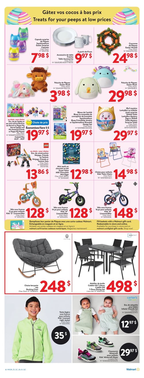 Walmart, c'est la destination par excellence pour tous vos besoins d’achats au quotidien et pour vos grandes occasions! Véritable incontournable au Québec et ailleurs, Walmart se distingue par son vaste choix de produits à des prix imbattables. Que vous soyez à la recherche d'épicerie, de vêtements pour toute la famille, de produits électroniques dernier cri, de meubles ou encore d'articles pour la maison, Walmart a tout ce qu’il vous faut sous un même toit.