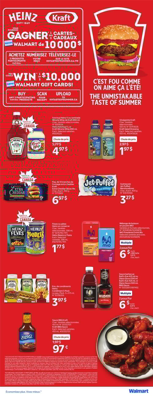 Les économies sont au rendez-vous grâce aux promotions régulières et aux circulaires remplies de rabais sensationnels. Les chasseurs de bonnes affaires seront ravis de trouver des réductions sur une multitude de produits chaque semaine. Et pour encore plus de commodité, Walmart offre le service de commande en ligne avec la possibilité de ramassage en magasin ou de livraison à domicile, rendant vos achats plus faciles que jamais.